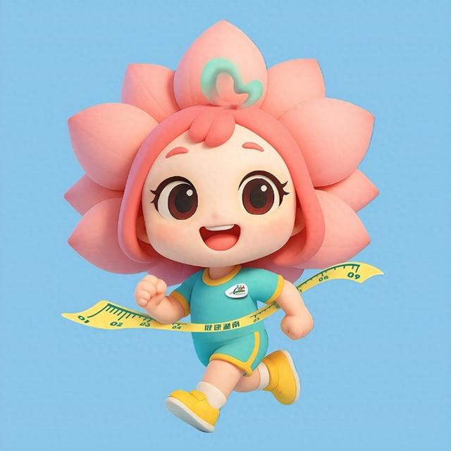 “芙心娃”以清新的淡粉色为主色调,荷花花瓣的柔美曲线与充满张力的冲刺姿势巧妙结合,展现出“动静相宜”的健康美学。踮起脚尖、双臂舒展的动态造型,既似荷花绽放的优雅,又似运动健儿的拼搏姿态,传递“健康生活充满活力与动感”的积极信号。设计者表示,希望通过这一形象打破传统健康宣传的严肃感,让“健康生活也可以很酷”的理念深入人心,引领更多人走向健康、活力、时尚的生活方式。